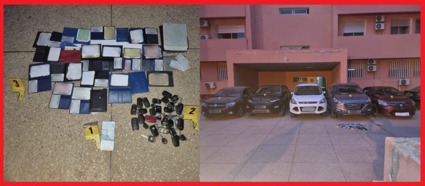 وقد تم تنفيذ هذه العملية الأمنية بشكل متزامن في أماكن مختلفة بمدينة بني ملال، حيث أسفرت إجراءات الضبط والتفتيش المنجزة في هذه القضية عن حجز تسعة سيارات من مختلف الأنواع والفئات ودراجة نارية تجري الأبحاث والخبرات التقنية للتحقق من مصدرها وقانونيتها، علاوة على هواتف نقالة ومبالغ مالية يشتبه في كونها من عائدات هذا النشاط الإجرامي.