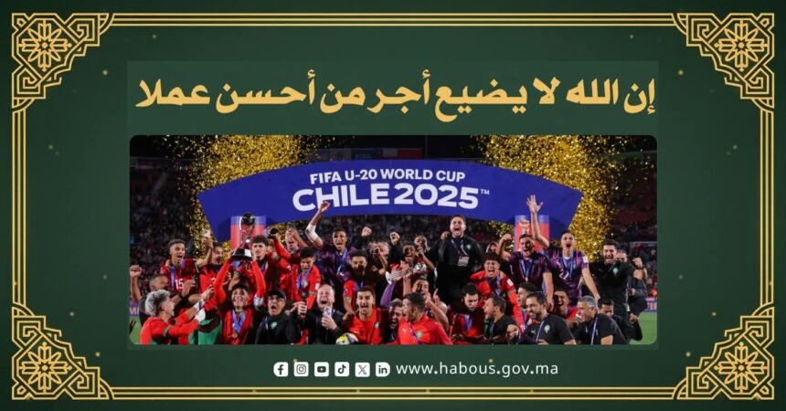 أعربت وزارة الأوقاف والشؤون الإسلامية عن اعتزازها الكبير بفوز المنتخب الوطني المغربي لأقل من 20 سنة بكأس العالم، معتبرة أن هذا الإنجاز الرياضي يشكل تجسيدا عمليا لقيم الإحسان والإتقان في العمل التي يدعو إليها الإسلام، كما ورد في قوله تعالى: “إِنَّا لَا نُضِيعُ أَجْرَ مَنْ أَحْسَنَ عَمَلًا” (سورة الكهف، الآية 30).