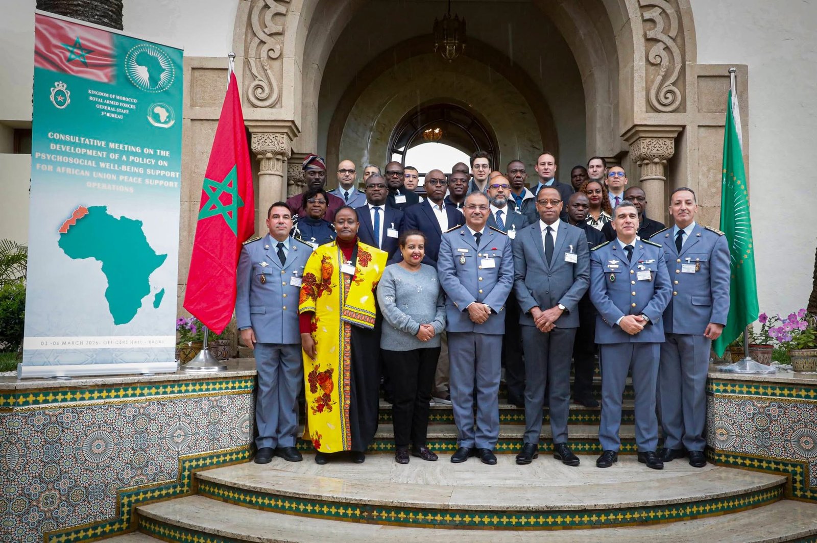 في إطار التعاون القائم بين المملكة المغربية والاتحاد الإفريقي في مجال عمليات دعم السلام، نظمت القوات المسلحة الملكية، بنادي الضباط بالرباط، خلال الفترة من 3 إلى 6 مارس الجاري، ورشة تشاورية خصصت لإطلاق أعمال إعداد استراتيجية الاتحاد الإفريقي الخاصة بالدعم النفسي والاجتماعي للعاملين في عمليات السلام.