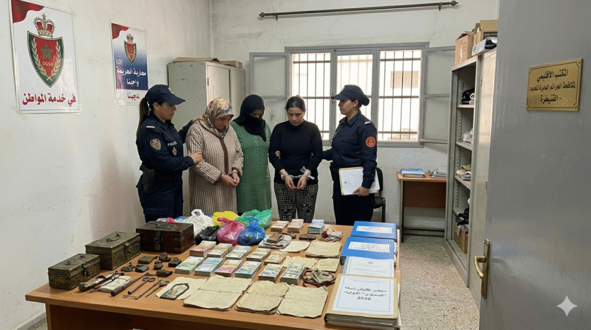 تمكنت عناصر الشرطة القضائية بولاية أمن بني ملال من وضع حد لنشاط شبكة إجرامية نسائية خطيرة مكونة من ثماني سيدات، تخصصن في النصب والاحتيال عبر استغلال معتقدات الشعوذة وما يعرف محليا بـ“السماوي” للإيقاع بضحاياهن.
