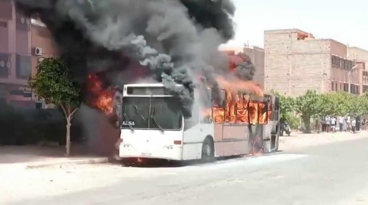 مراكش.. نيران تلتهم حافلة للنقل الحضري