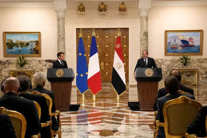 السيسي في مؤتمر صحافي مع ماكرون يدعو لتجنب “الاجتياح البري” لغزة